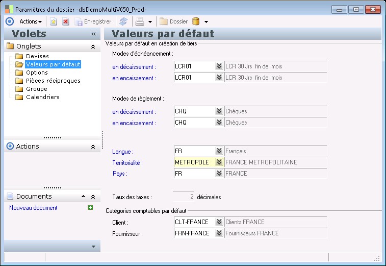 Cette zone indique la territorialité de la société vis-à-vis du calcul des taxes : Elle sert à déterminer le régime de TVA en pièce commerciale (en combinaison avec la territorialité liée à l'adresse du tiers concerné par la pièce).