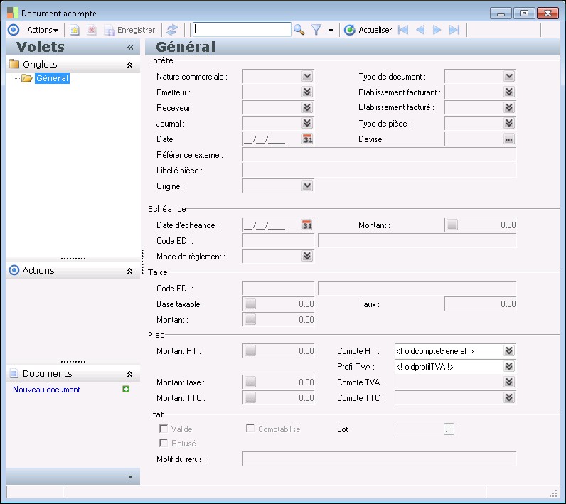 Cette zone permet d'indiquer le type de pièce pour la comptabilisation des écritures.