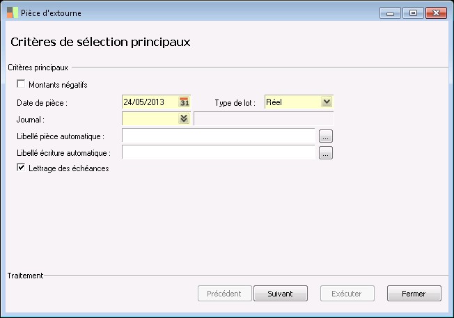 Cette sélection précise le type de lot contenant la pièce d'extourne : Réel ou simulation.