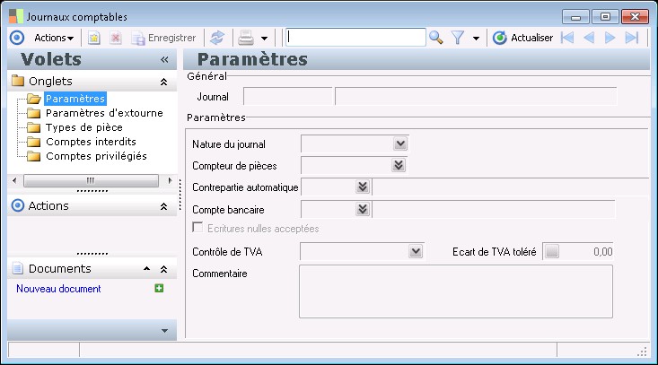 Le journal doit être rattaché à un compteur de pièce. Ceci permettra d'incrémenter le numéro de pièce à chaque saisie d'une nouvelle pièce sur le journal considéré.