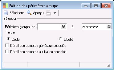Cocher cette case permet d'éditer la liste des comptes auxiliaires associés aux périmètres groupes sélectionnés.
