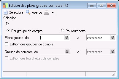 Le tri par fourchettes permet d'éditer les fourchettes de comptes rattachées à chaque plan groupe.