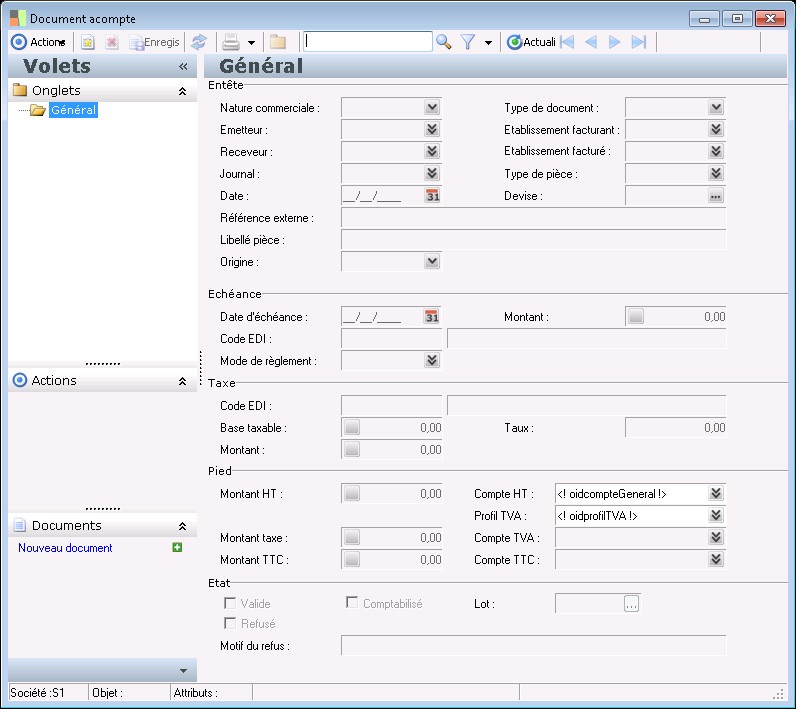 Cette zone permet d'indiquer le type de pièce pour la comptabilisation des écritures.