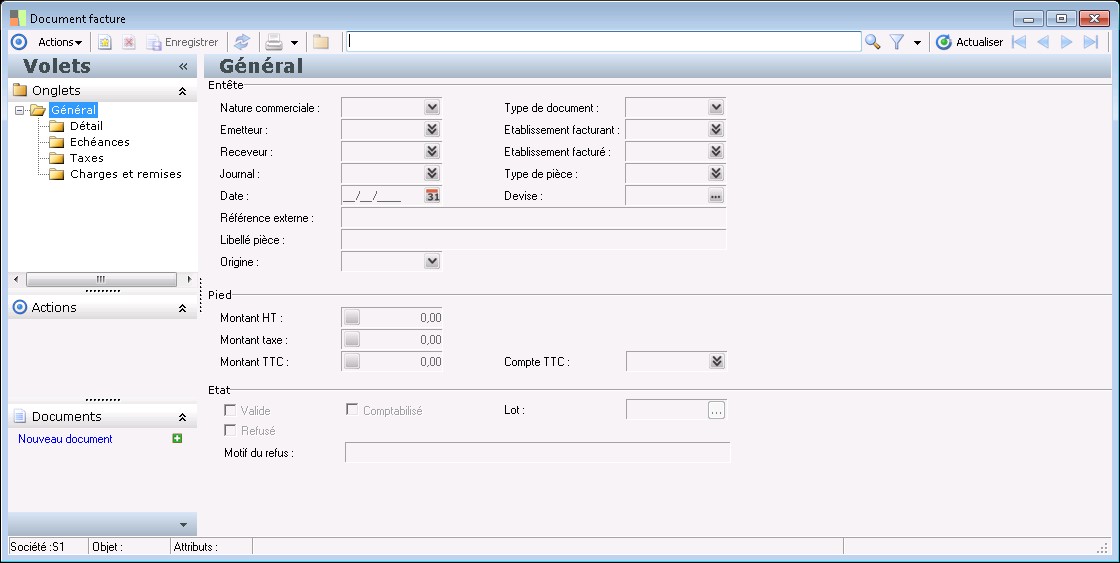 Cette zone permet d'indiquer le type de pièce pour la comptabilisation des écritures.