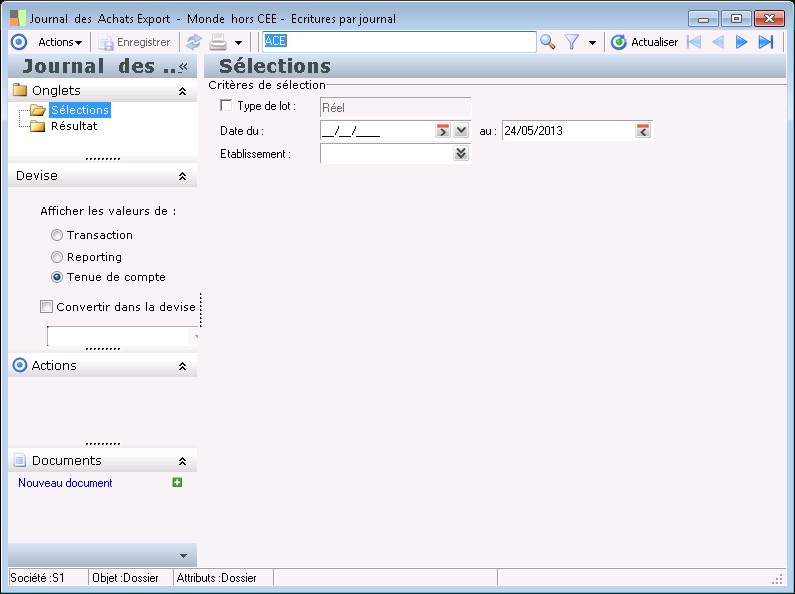 Le type de lot peut prendre deux valeurs distinctes - Réel ou Simulation - afin de permettre de distinguer leurs cumuls par comptes, établissement, devise, ou journal.
