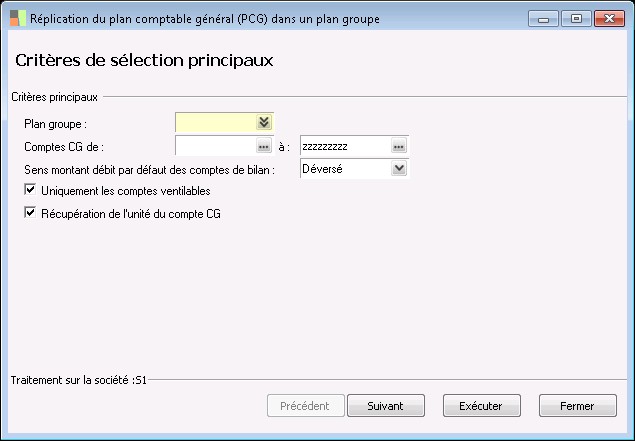 Indiquez dans cette zone la borne inférieure de la fourchette des comptes généraux à traiter.