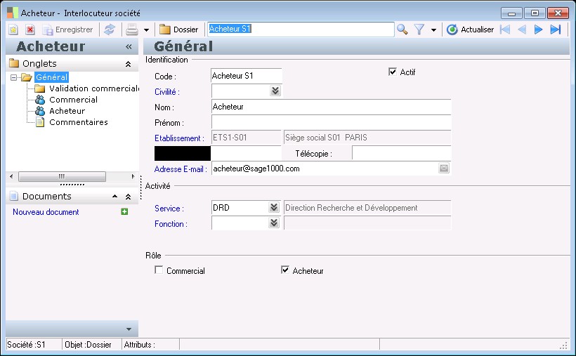 Cochez cette zone pour indiquer que l'employé occupe la fonction d'acheteur , son nom est accessible en :