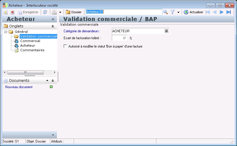 Détail de la page : Validation commerciale / BAP