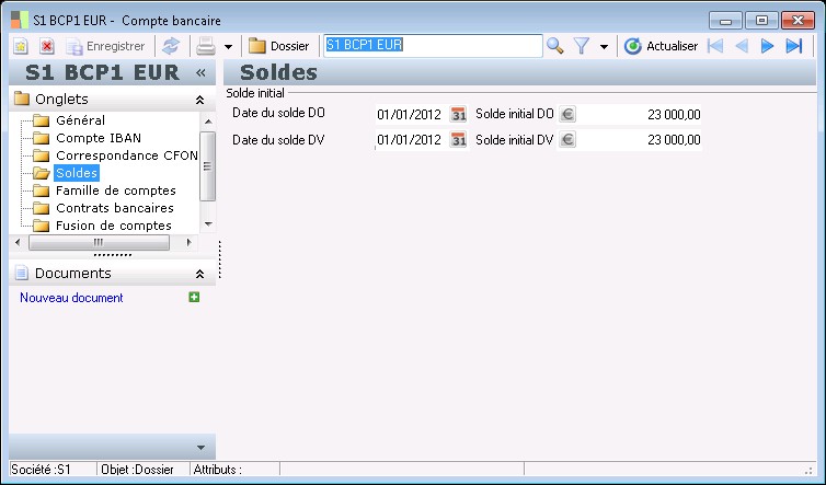 Vous renseignez dans ce dossier les soldes initiaux du compte bancaire.