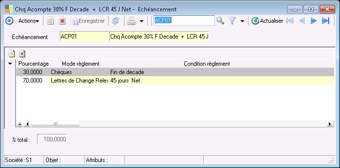 Le pourcentage permet d'éclater en une ou plusieurs échéances le règlement d'une facture.
