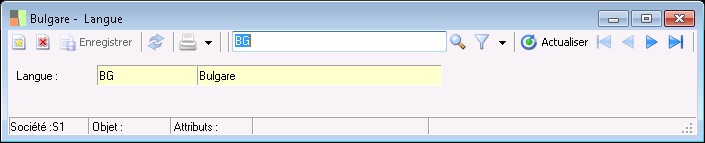 La fenêtre de saisie des langues permet d'enregistrer le code ainsi que la désignation de la langue.