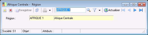 La fenêtre de saisie des régions permet d'enregistrer le code ainsi que la désignation des régions mentionnées dans les fiches tiers.