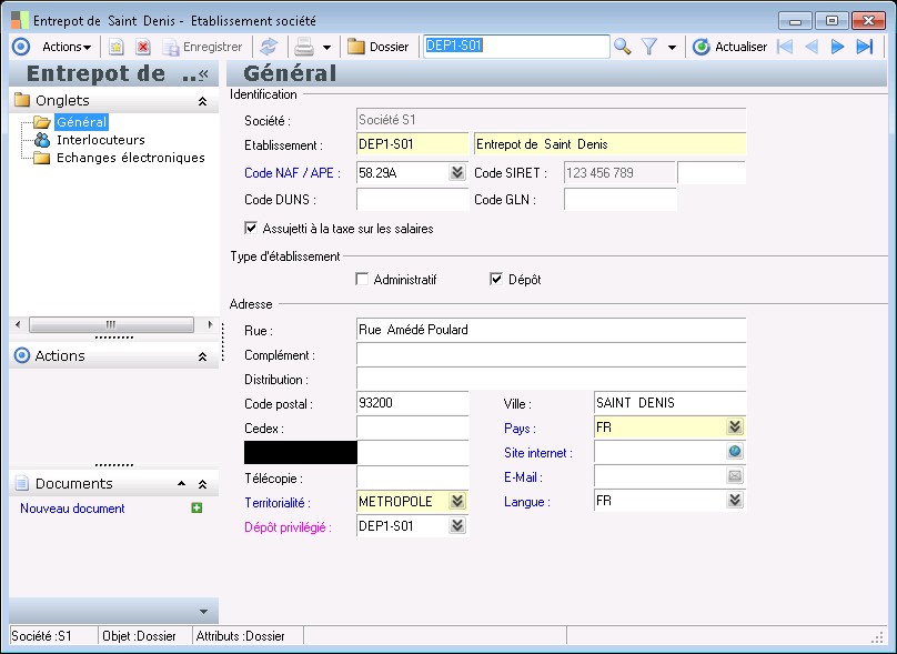 Cette zone permet de sélectionner la territorialité à laquelle appartient l'établissement.