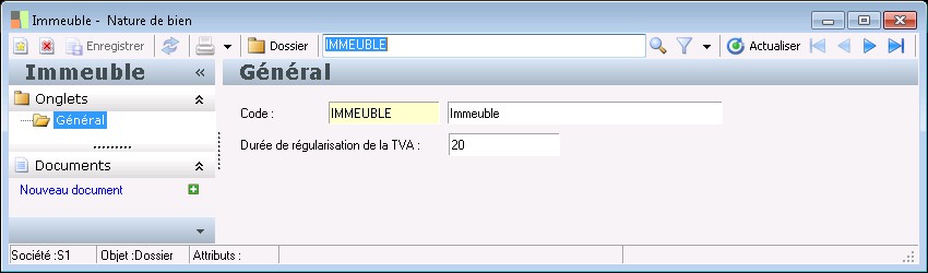 Sur chaque nature de bien créée, on peut indiquer une durée de régularisation de TVA.