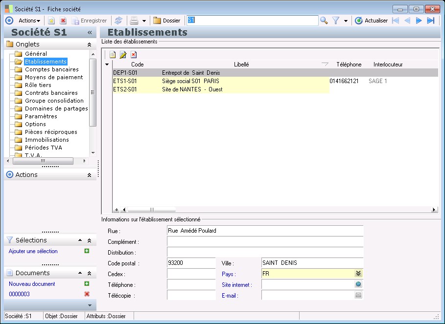 Cette zone permet de renseigner le pays d'après les informations contenues dans la table des pays. Le pays proposé par défaut correspond à celui de l'établissement indiqué dans la fiche société.