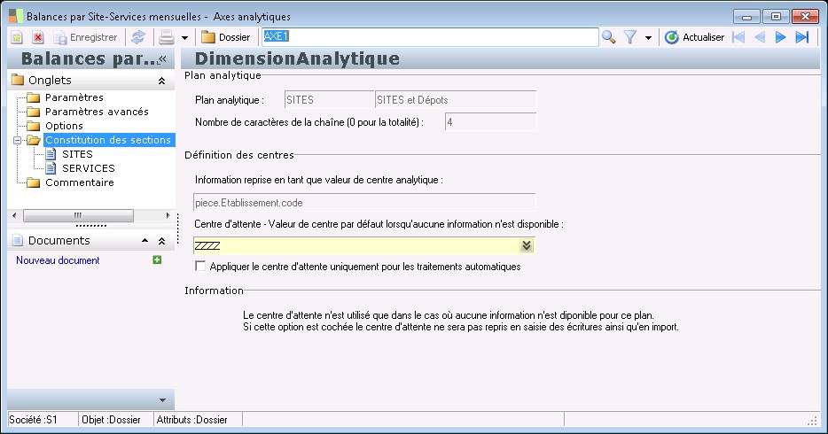 La section d'attente est une section destinée à recevoir tous les fluxs analytiques qui feront l'objet d'une imputation analytique ultérieure. Contrairement à la section de différence d'incorporation, l'imputation analytique revêt ici un caractère temporaire.