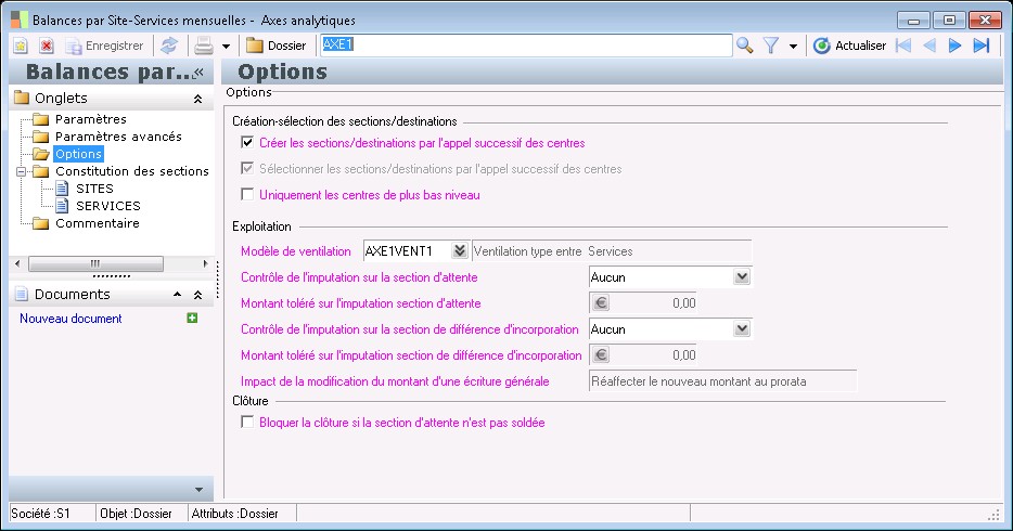 Dans le cadre d'un axe analytique ventilable à 100%, le solde non affecté de l'écriture de comptabilité générale pourra être mis par défaut sur la section d'attente si le paramètre Affectation du solde de pièce en différence d'incorporation n'est pas coché.