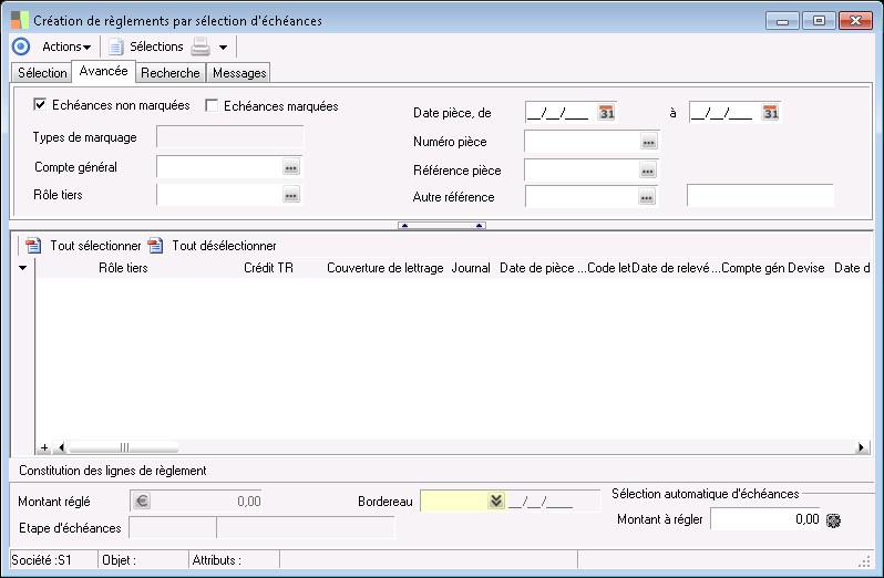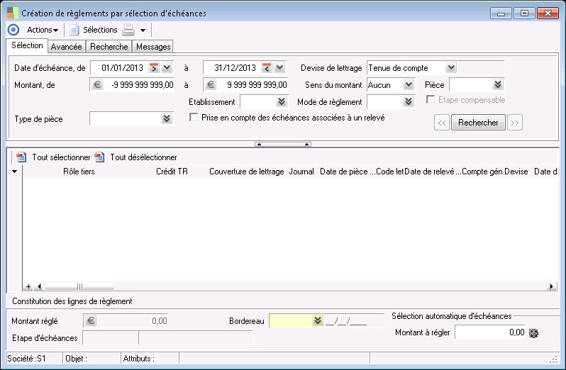 - si vous cochez cette option, les échéances faisant partie d'une relevé et répondant aux critères de sélection seront prises en compte dans le traitement.
