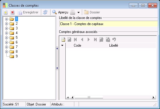 La création d'une classe de comptes ou d'une sous-classe s'effectue à l'aide du menu contextuel.