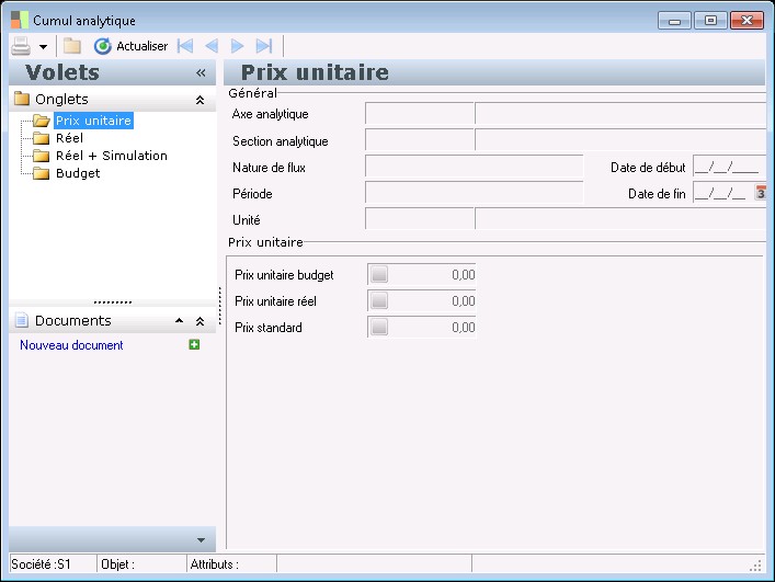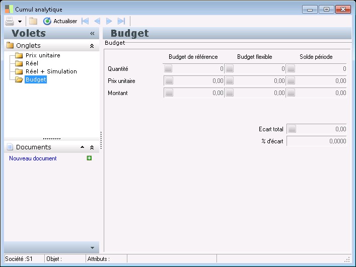Le solde quantité réel + simulation (Solde quantité RS) représente le solde en quantité des écritures réelles + simulation de comptabilité générale augmenté des écritures analytiques pures (écritures analytiques pures de type pièce réel ou simulation + quantités déversées et reçues) sur la destination analytique pour une période donnée (quantités signées).