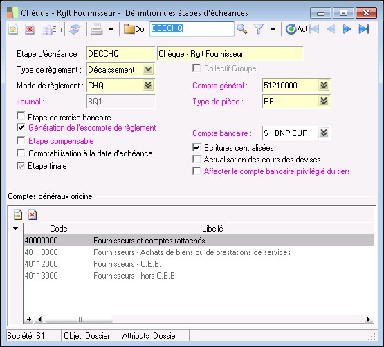 Il s'agit du compte général de l'étape. C'est ce compte qui sera utilisé pour comptabiliser l'évolution des échéances à cette étape.