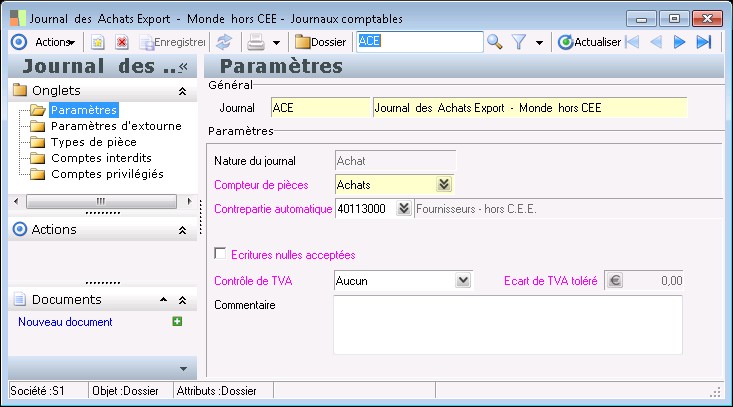 Le journal doit être rattaché à un compteur de pièce. Ceci permettra d'incrémenter le numéro de pièce à chaque saisie d'une nouvelle pièce sur le journal considéré.