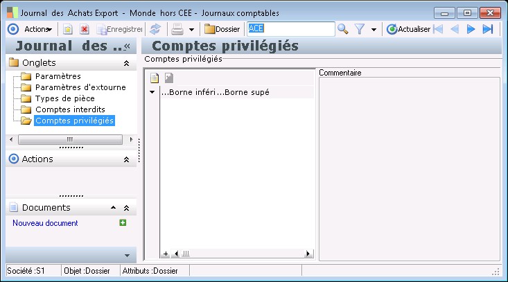 Il est possible de rattacher à un journal des fourchettes de comptes interdits. Ces comptes ne pourront pas être sélectionnés en saisie d'écritures comptables.la même façon, il est possible de définir des fourchettes de comptes privilégiés.Il s'agit des comptes qui seront le plus utilisés sur le journal considéré.dans les paramètres comptables, la case "Présentation des comptes privilégiés uniquement en saisie d'écritures" est cochée, l'application présentera par défaut dans tous les écrans de saisie les comptes privilégiés par journal.il est toujours possible de visualiser tous les comptes : par un clic droit sur la zone compte dans chacun des écrans de saisie, il suffit de décocher la fonction "Comptes priivilégiés par journal".