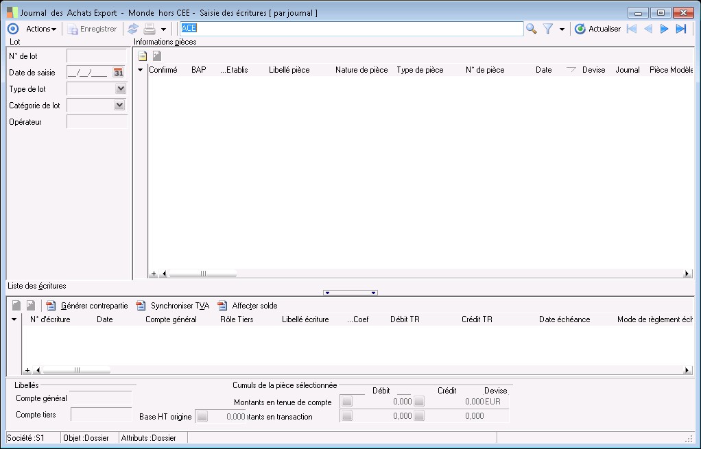 - Retraitement : pour les lots contenant des pièces de nature nationale ou IAS / IFRS correspondant à des écritures de fin de période comme les amortissements par exemple.