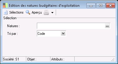 Cet écran vous permet d'éditer la liste des natures budgétaires d'exploitation, triées par code ou par libellé.