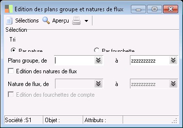 Le tri par fourchette édite les plans groupes et les natures de flux dans l'ordre croissant des fourchettes de comptes.