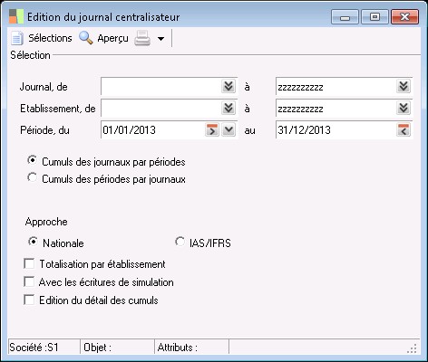 Sélectionner le type d'édition souhaitée, par cumul des journaux par période ou par cumul des périodes par journaux.