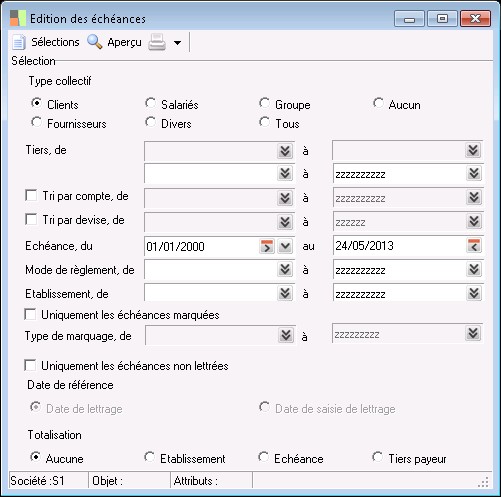 Le radio bouton "Date de référence" permet de déterminer la date à utiliser dans l'édition des échéances non léttrées pour considérer le lettrage.