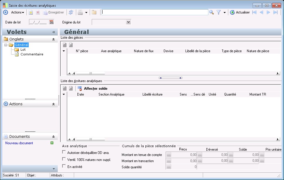 Lorsque le déséquilibre est autorisé (case cochée), il n'est pas nécessaire que la pièce OD analytique (écriture analytique pure) soit équilibrée lors de la validation : le solde de la pièce peut être différent de zéro.