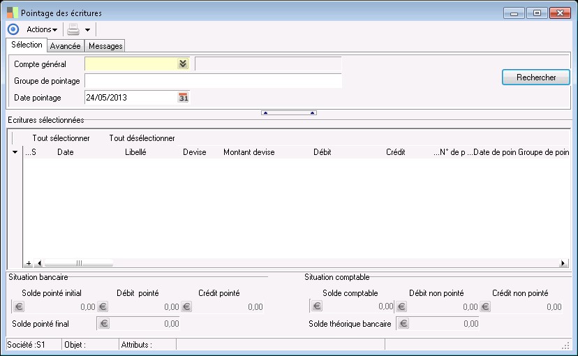 Cette zone affiche le solde comptable à la date du pointage.