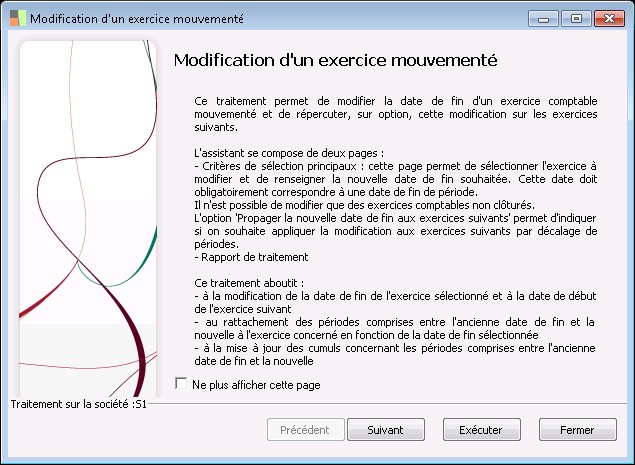 Si cette option est activée, la modification de la date de fin d'exercice s'applique à la fois à l'exercice sélectionné et est aussi répercutée automatiquement à tous les exercices suivants s'il en existe au moins un.