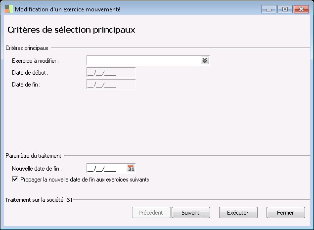 Permet de sélectionner l'exercice comptable pour lequel on souhaite modifier la date de fin.