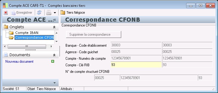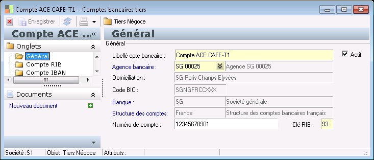 La clé RIB française permet de vérifier que le numéro de compte a été correctement saisi. Ce contrôle peut être désactivé dans la fiche agence bancaire.