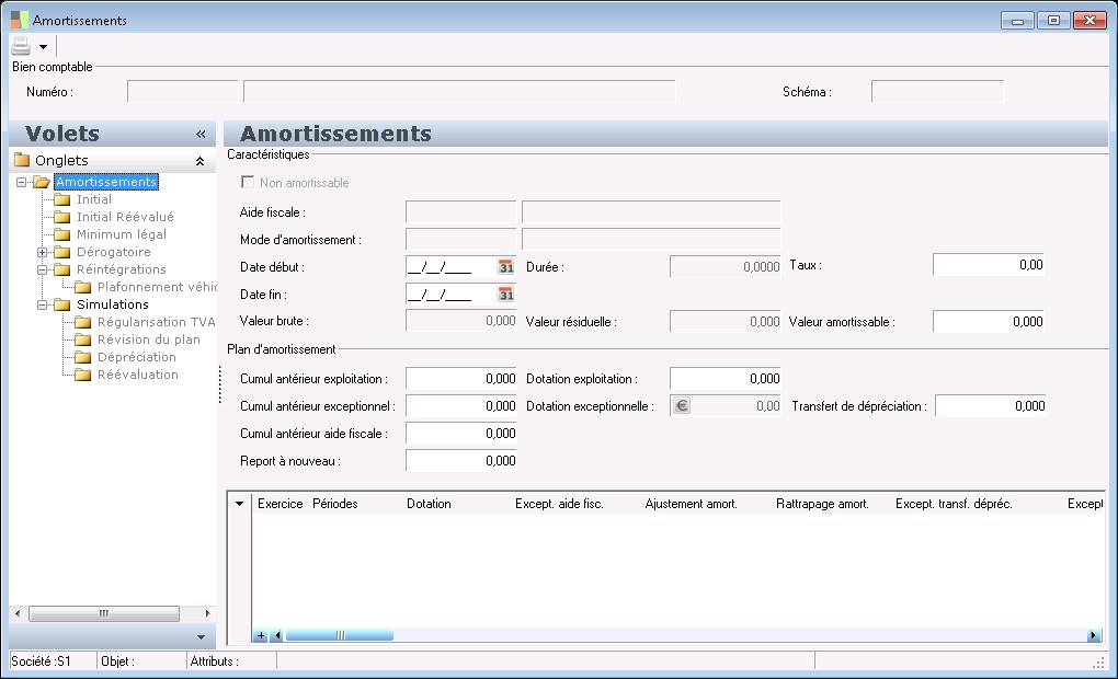 Cette zone correspond au cumul des amortissements exceptionnels (Rattrapage d'amortissement). Il est mis à jour par le traitement de clôture en y ajoutant le montant du rattrapage d'amortissement de l'exercice clôturé.