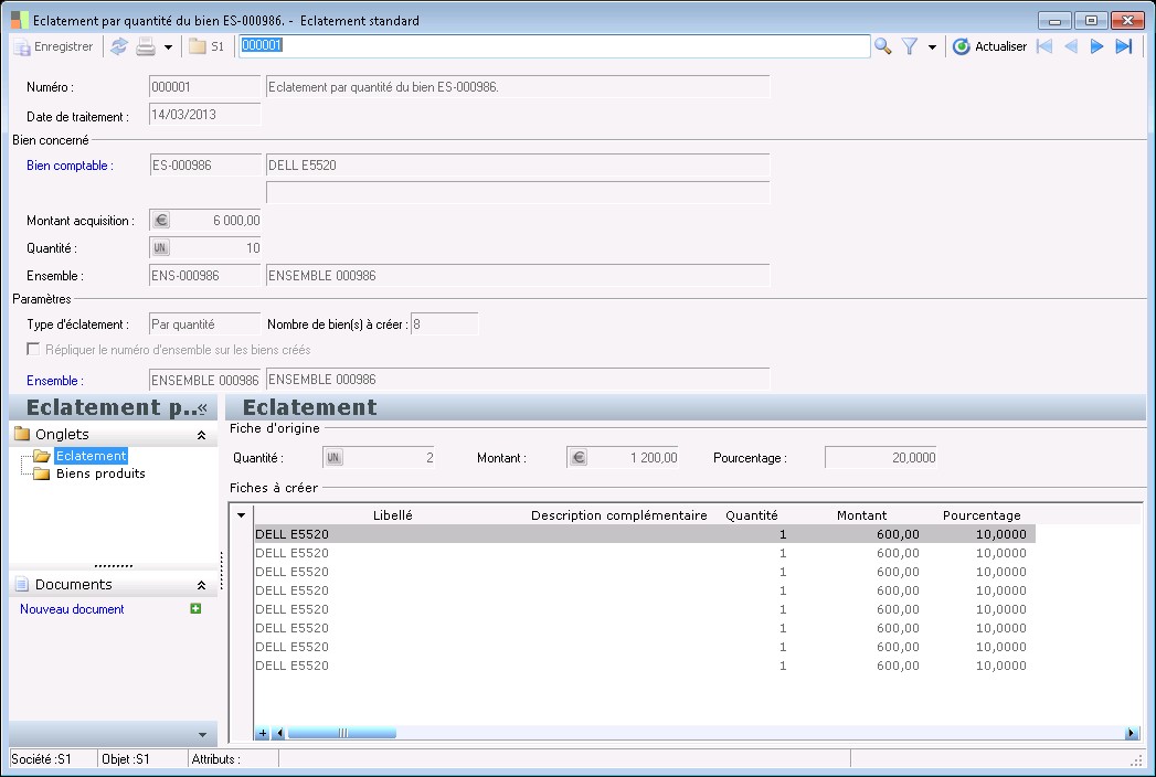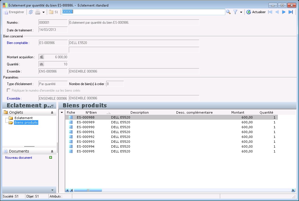 Il s'agit du numéro de la pièce d'éclatement de bien. il est incrémenté automatiquement d'après le compteur défini au niveau des paramètres immobilisations.