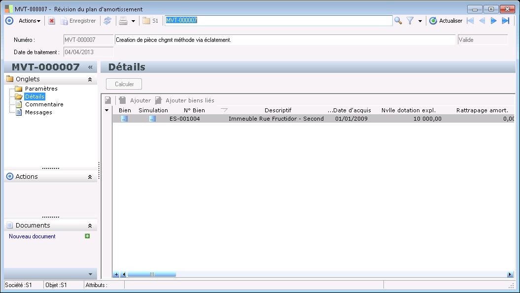 Ce paramettre permet de renseigner la nouvelle durée d'amortissement. Pour cela, il faut cocher Modification de durée .