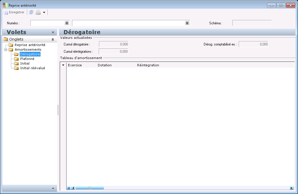 Cette zone correspond au montant de la dépréciation. Elle est saisissable dans le cadre de la saisie de l'antériorité.
