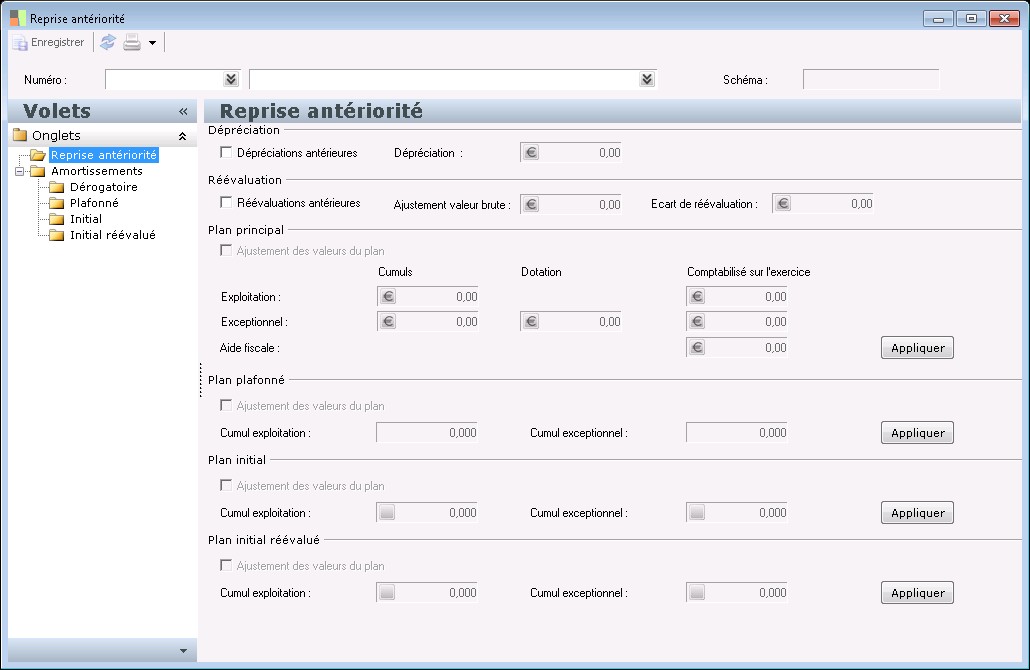 Cette zone correspond à l'écart de réévaluation. Elle est saisissable dans le cadre de la saisie de l'antériorité.