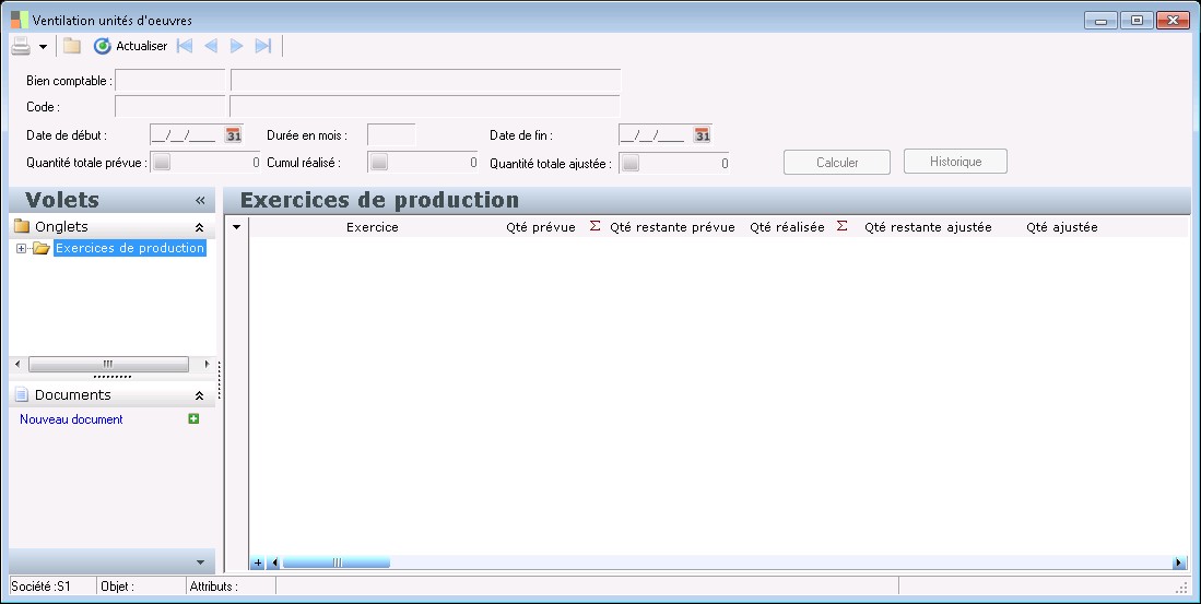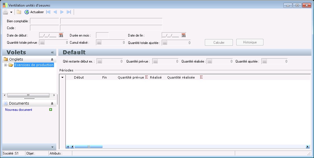 Pour chaque exercice ouvert, il est faut déterminer un nombre d'unités d'?uvre prévues pour chaque période ouverte. Il est également possible de saisir un nombre d'unités d'?uvre réalisées.