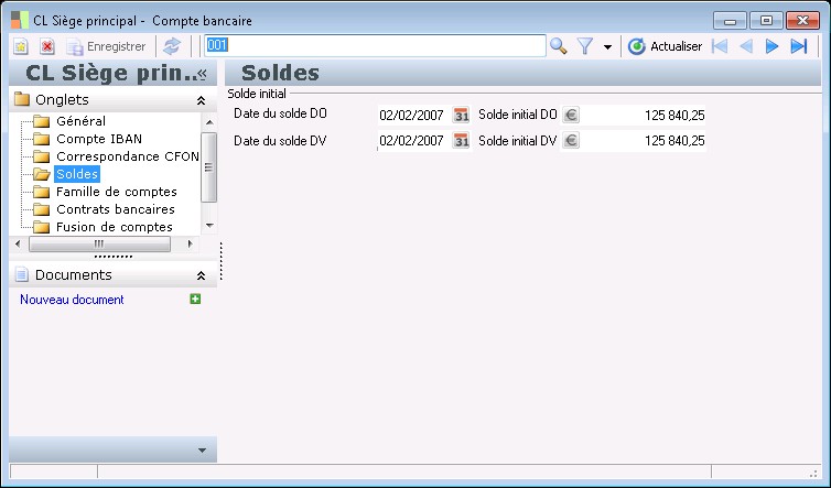 Vous renseignez dans ce dossier les soldes initiaux du compte bancaire.