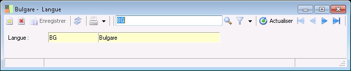La fenêtre de saisie des langues permet d'enregistrer le code ainsi que la désignation de la langue.