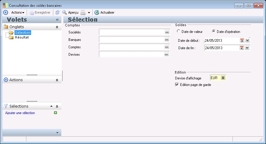 Sélectionner le type de solde souhaité, en date de valeur ou en date d'opération.