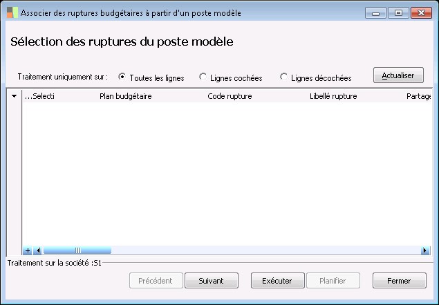 Associer des ruptures budgétaires à partir d'un poste modèle