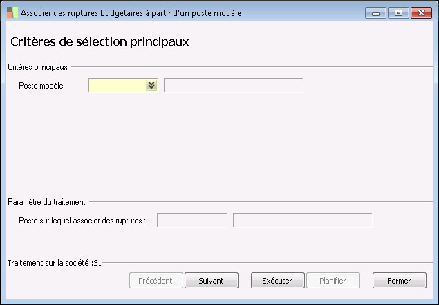 Associer des ruptures budgétaires à partir d'un poste modèle Cette fonction donne accès à un assistant afin de rattacher un poste budgétaire à un poste modèle.