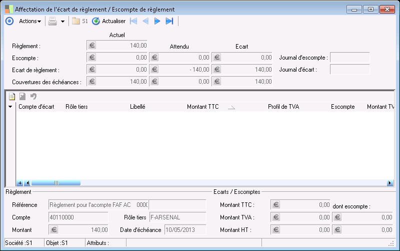 Pour valider le règlement, cet écart doit être totalement affecté, c'est à dire que l'écart affecté doit être identique à l'écart constaté.
