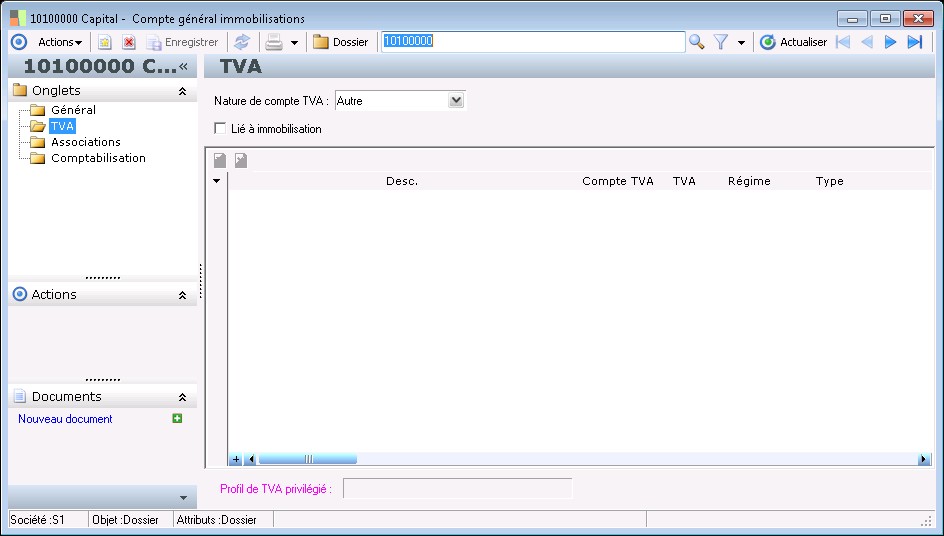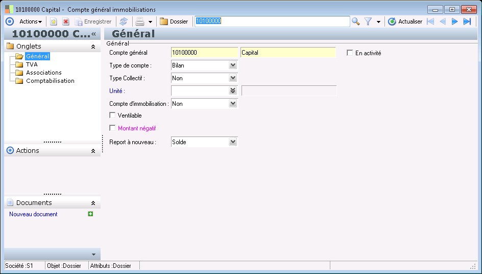 Cette zone permet d'indiquer si le compte est un compte d'immobilisations ou pas, et dans l'affirmative si c'est un compte d'immobilisations en cours ou d'immobilisations en service.